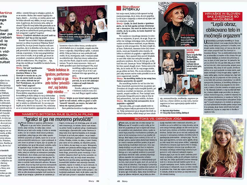 Pred nekaj leti sem šla s prijateljem in stanovskim kolegom Juretom Ivanušičem na Brione, in sicer poleti, ko tja številne ljubitelje uprizoritvene umetnosti privablja teater Ulysses Radeta Šerbedžije in pisatelja Borislava Vujčiča. Tam je bila tudi dr. Sanja Malbaša Gošovič, ki je z metodo teenlifting ‘trenirala’ celo ekipo. In tako so vsi igralci, glasbeniki, skratka vsi ustvarjalci od prvega dne, ko sem prišla, govorili o neki Sanji, nekih elektrodah, nekem liftingu in tam je bil list, na katerega so se vpisovali, in potem ob dogovorjenih urah izginjali in prihajali nazaj, kot bi bili omamljeni.